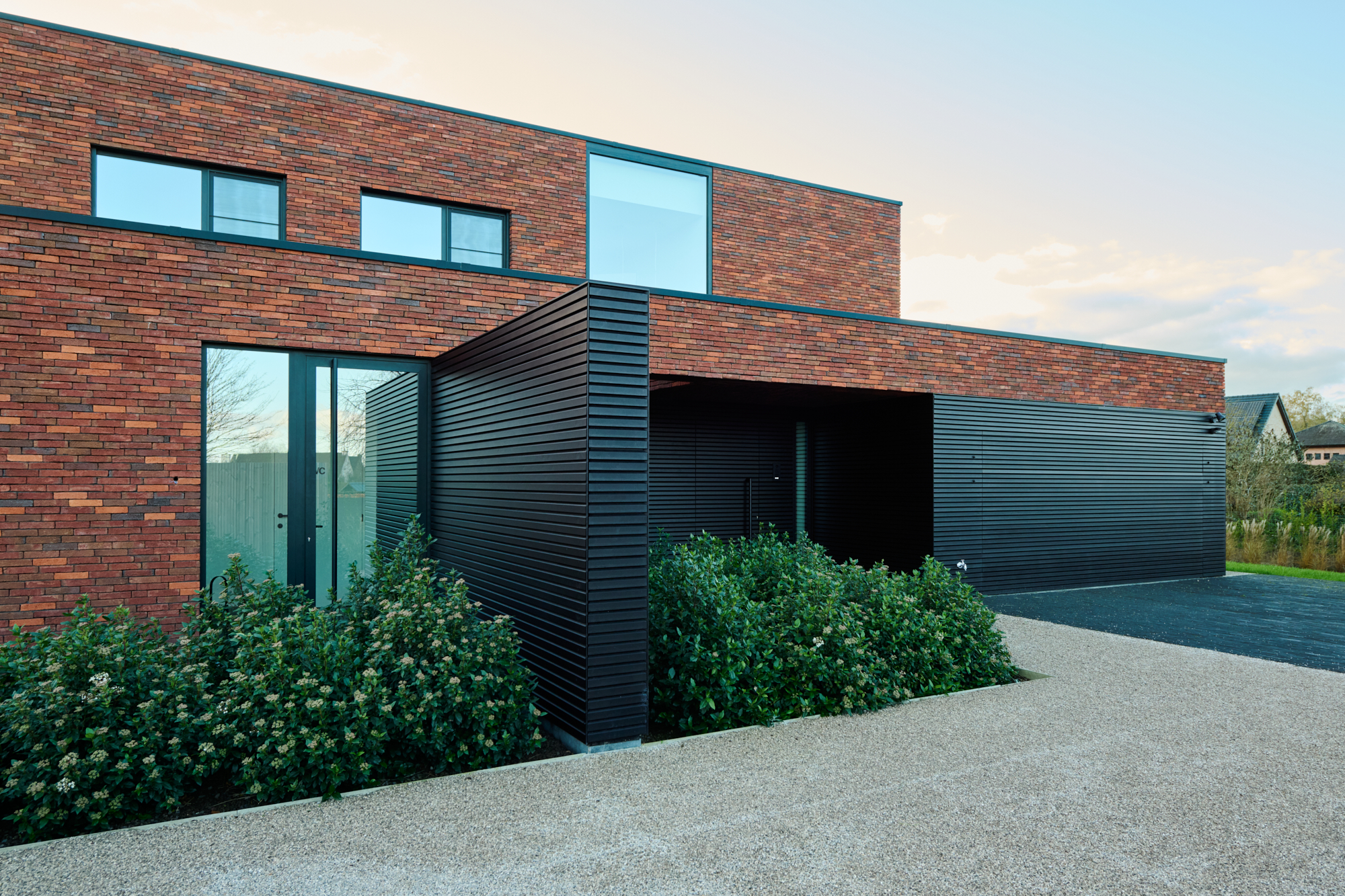 De leefruimte en keuken lopen ongehinderd door in het overdekt terras. De maximaal beglaasde achter- en zijgevel betrekken de tuin op de leefruimtes.