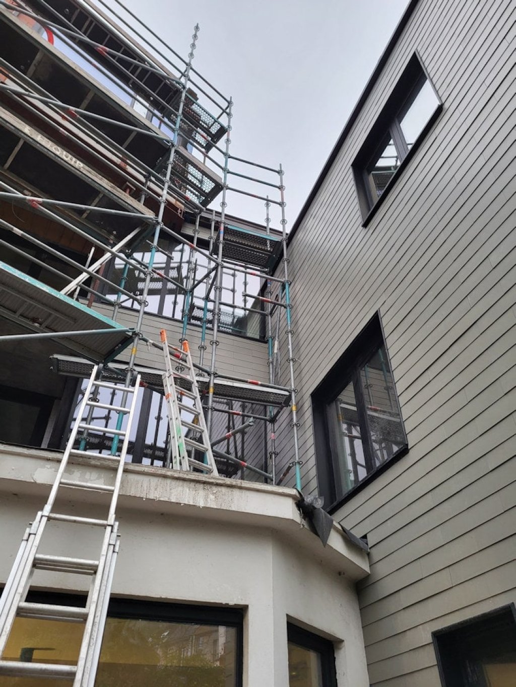 Twee karakteristieke gevels worden met zorg omgevormd tot een meergezinswoning.
