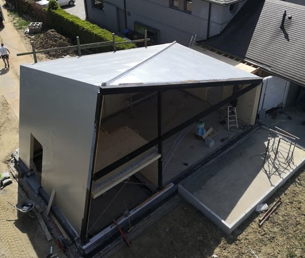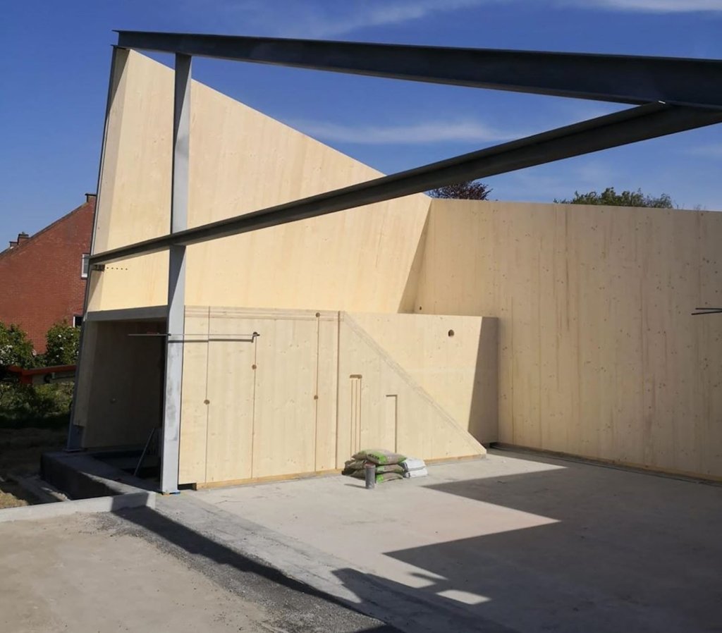 De uitbreiding werd volledig gebouwd met CLT (Cross-Laminated-Timber).