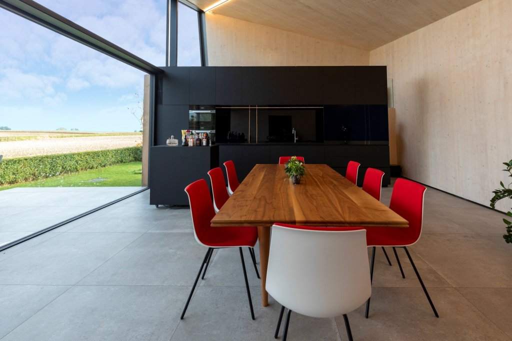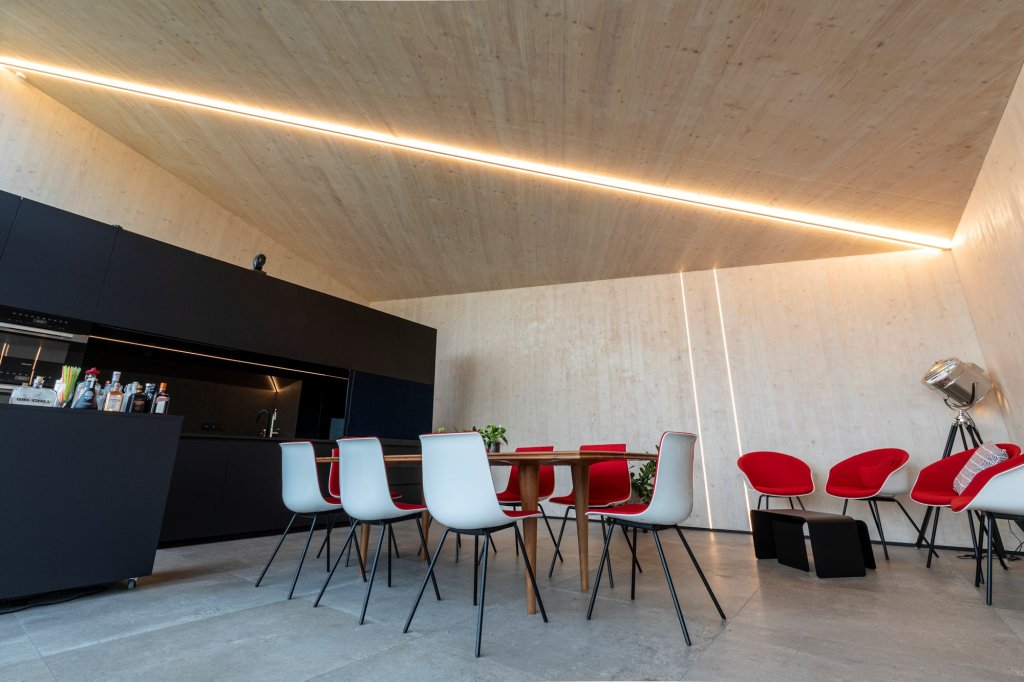 In de filosofie van ‘what you see is what you get’ vormen die structurele elementen meteen ook de ‘aangename’ en ‘warme’ binnenafwerking van het gebouw.